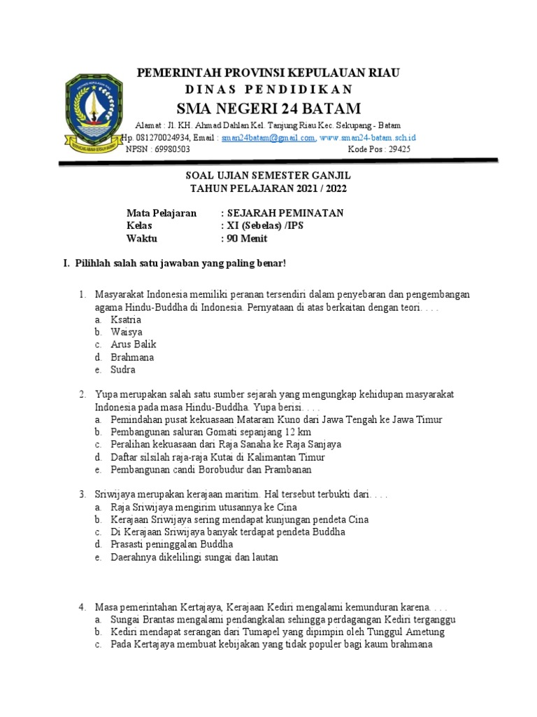 40 Soal Sejarah Peminatan Kelas 11 Semester 1 Beserta Jawabannya