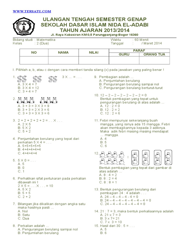 Matematika, seringkali dianggap sebagai mata pelajaran yang menantang, sebenarnya adalah bahasa universal yang membuka pintu pemahaman terhadap dunia di sekitar kita. Bagi siswa kelas 2 Sekolah Dasar (SD), semester genap merupakan periode krusial untuk memantapkan konsep-konsep dasar yang telah dipelajari sebelumnya dan memperkenalkan topik-topik baru yang semakin memperluas wawasan numerik mereka. Memahami dan berlatih soal-soal matematika adalah kunci utama agar anak-anak merasa percaya diri dan antusias dalam belajar.